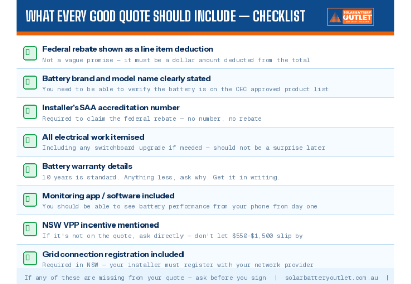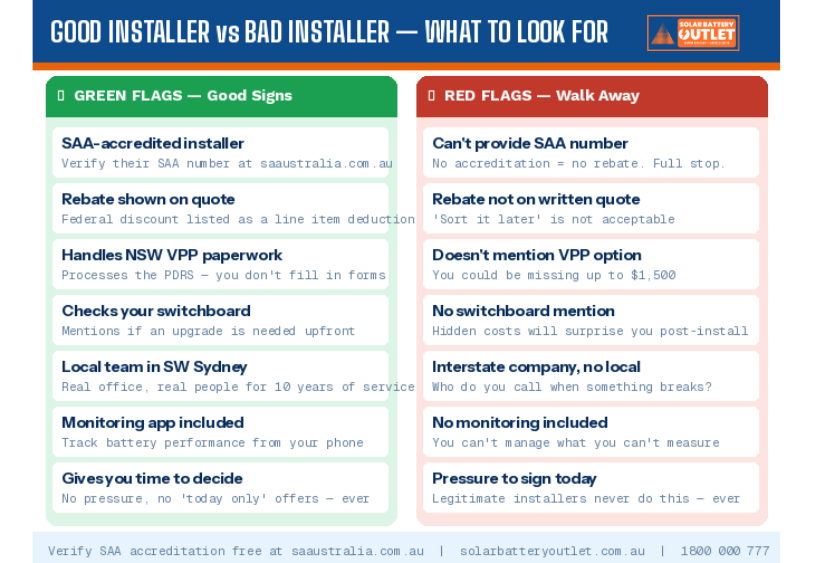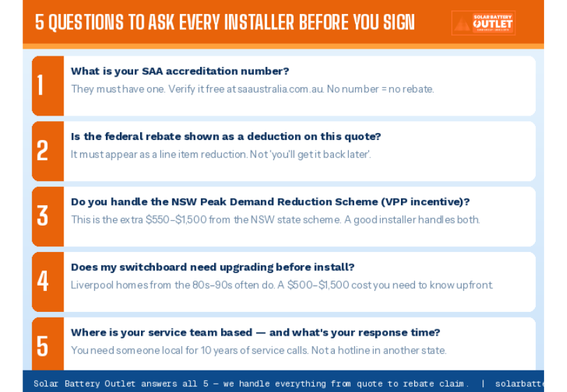 - Check if the installer will handle the NSW VPP incentive paperwork, not just the federal rebate