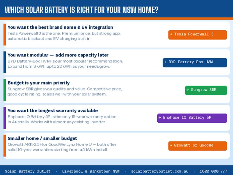 We install solar batteries every week across Liverpool, Bankstown, Campbelltown and South West Sydney. We see which ones perform well, which ones give customers headaches, and which ones represent genuinely good value after rebates. This guide is based on that real-world experience — not sponsored rankings.